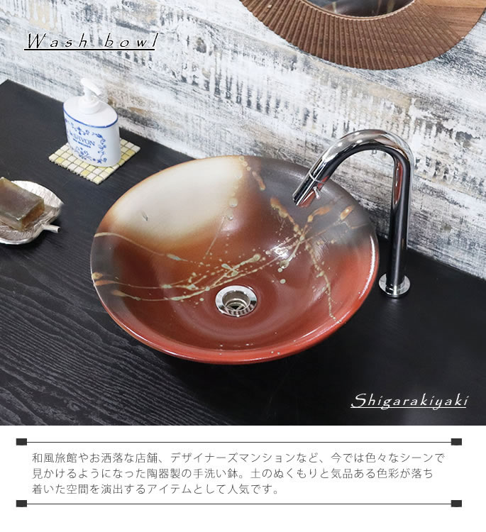 手洗い鉢 洗面台に信楽焼きの土のぬくもりを感じてみませんか。