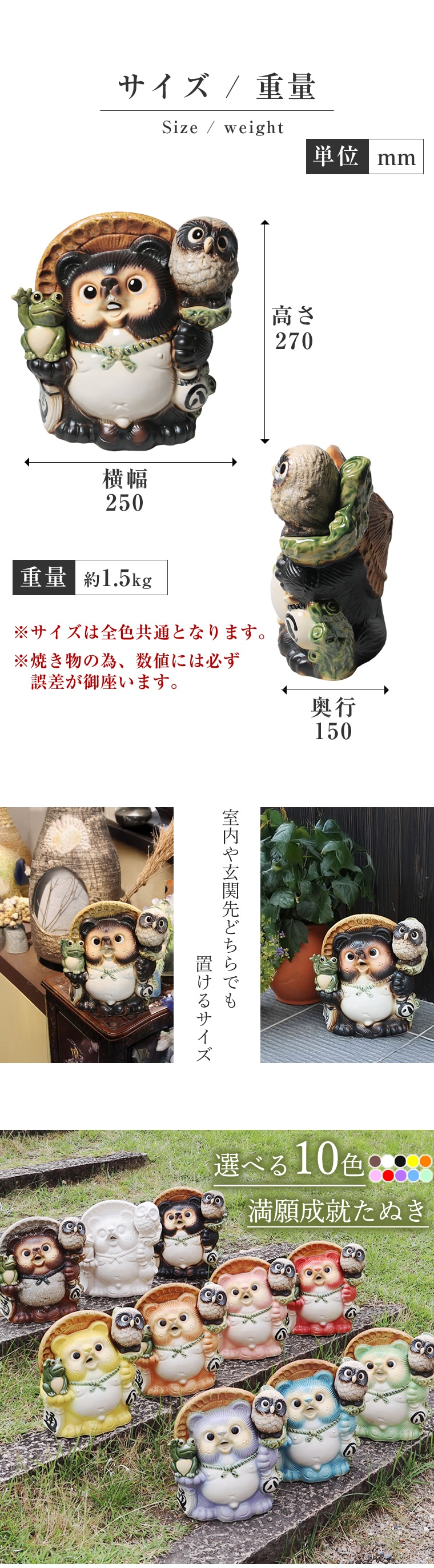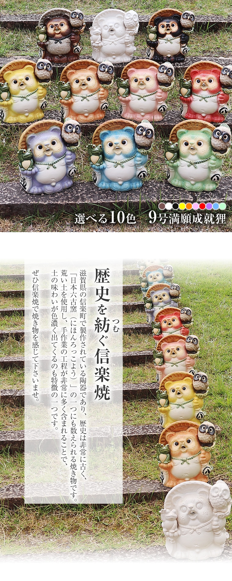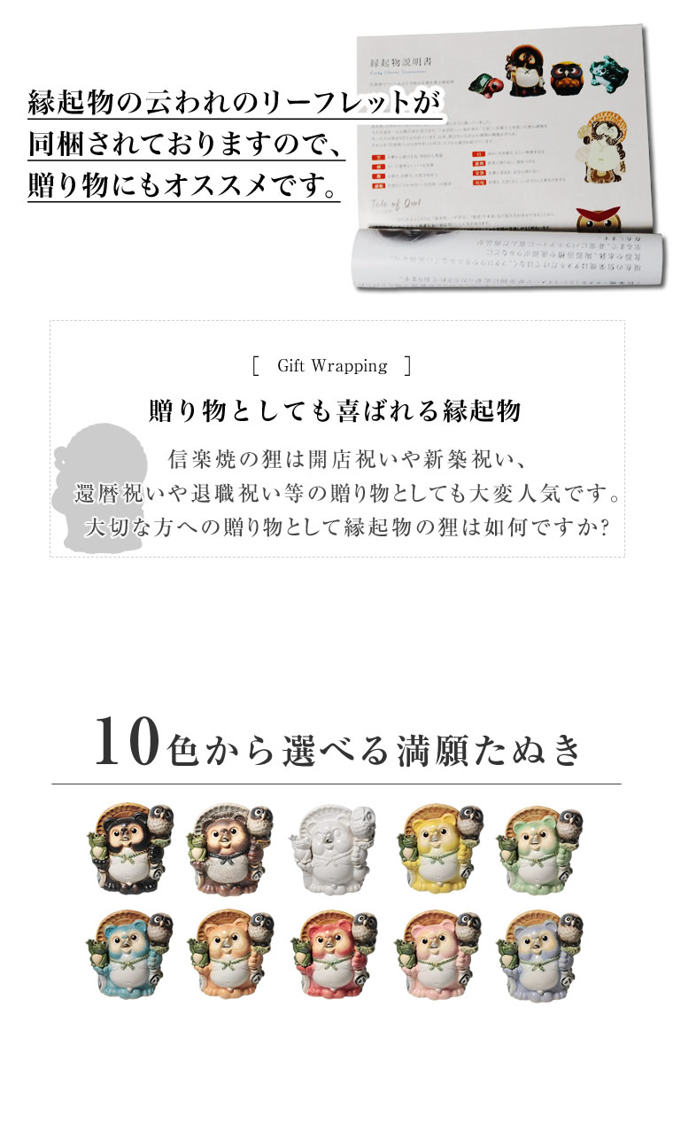 商品名信楽焼 選べる10色 9号満願成就たぬき