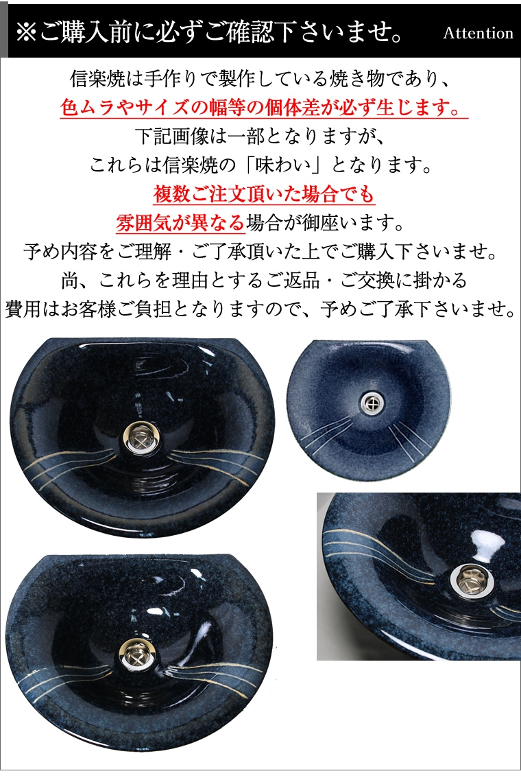 品 名 信楽焼 なまこ色半円型手洗い鉢