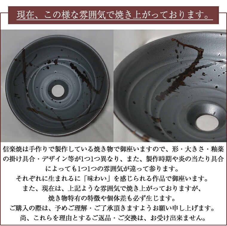 品 名 信楽焼 鉄釉ビードロ流し手洗い鉢