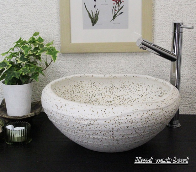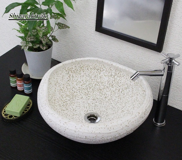 白斑点たわみ手洗い鉢【小型サイズ】信楽焼き手洗器!陶器の手水鉢[tr-2207]