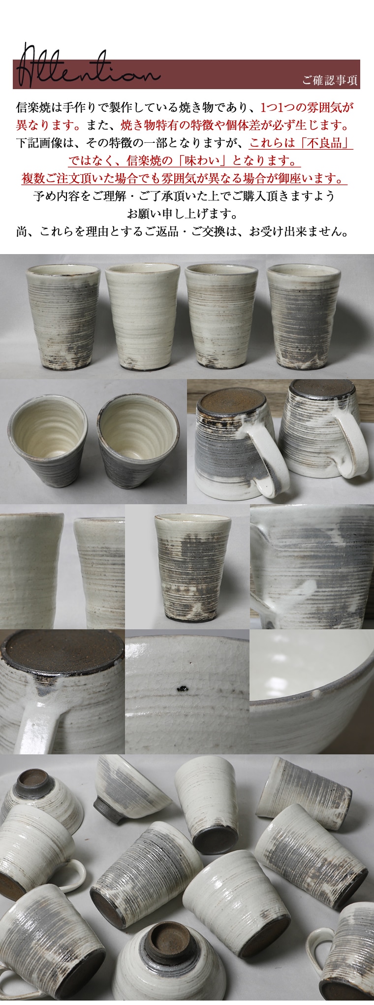 また、信楽焼の味わいは手作りにて製作することにあり、その反面、必ず形や色、大きさなどにムラが出たり、歪みが出ます。