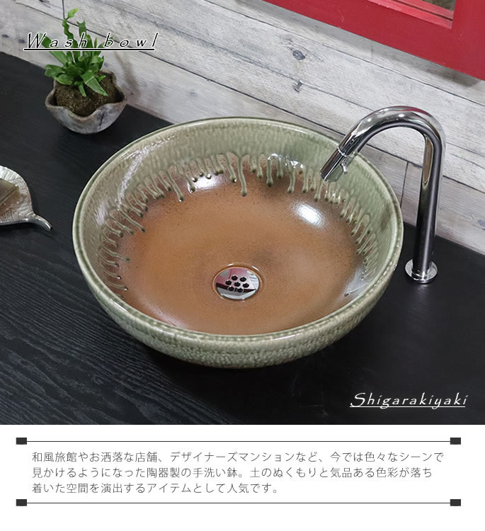 洗面台に信楽焼きの土のぬくもりを感じてみませんか。