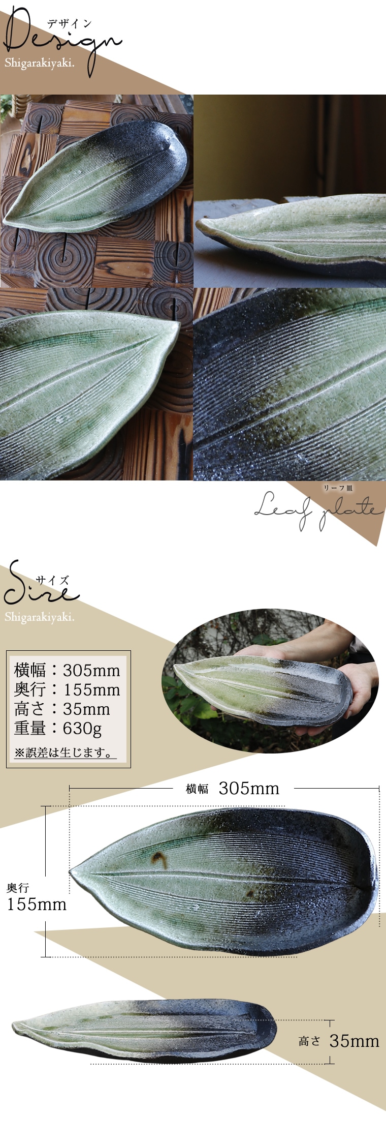 商品名信楽焼 ビードロ釉リーフ皿