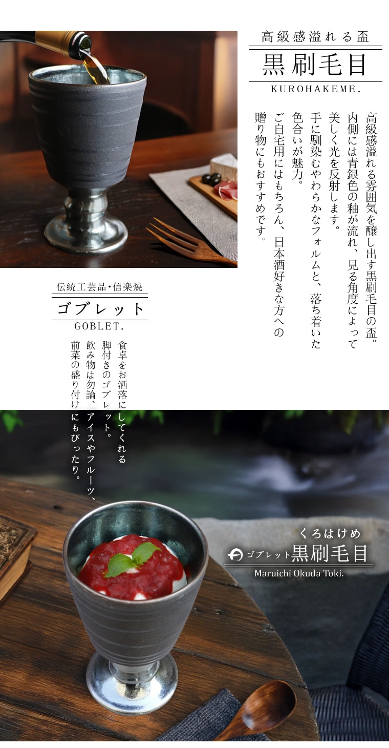 商品名信楽焼 選べる2色 秘境ゴブレット(白刷毛目/黒刷毛目)