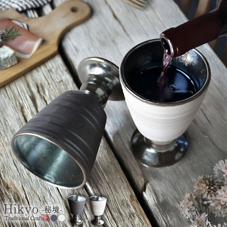 信楽焼 ワイングラス 銀色 ゴブレット 湯呑み 高級感 足付き 立ち湯呑み 食器 和食器 200ml おしゃれ 和風 デザートカップ 陶器 フリーカップ 結婚祝い 秘境シリーズ 選べる2色 ゴブレット w399-60